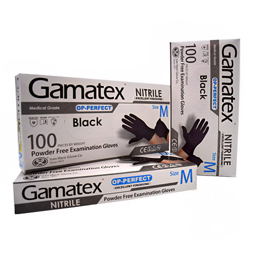 دستکش نیتریل مشکی گاماتکس سایز L بسته ۱۰۰ عددی